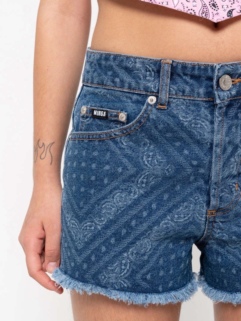 Minga London Bandana Indigo Denim Shorts