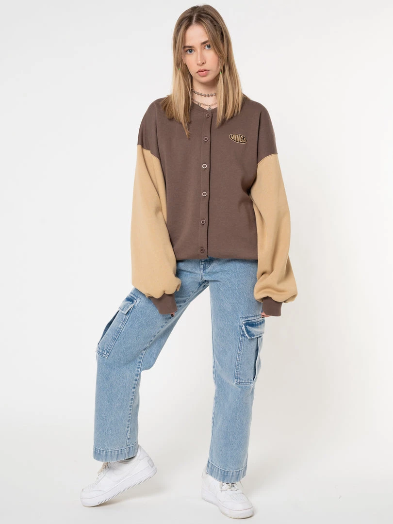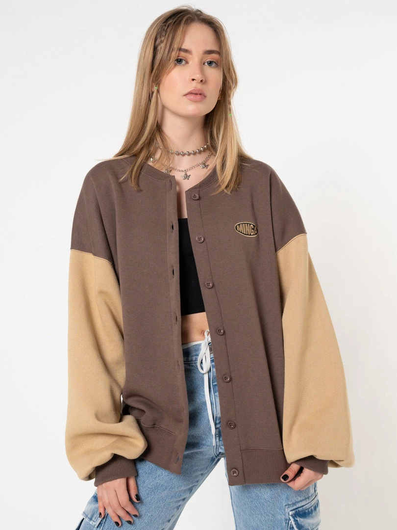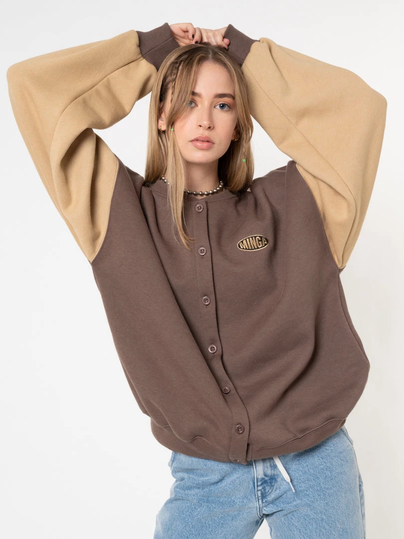 - Oversized bomber jacket in brown