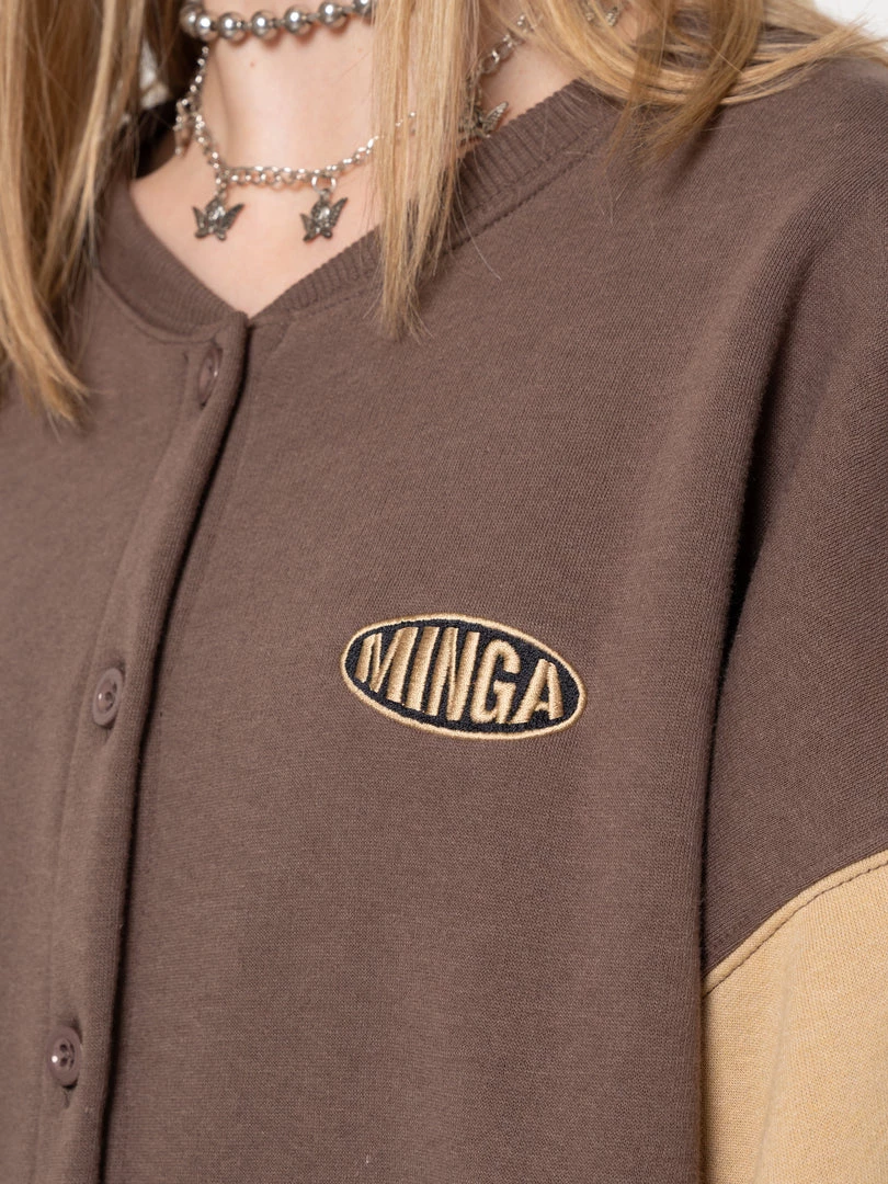 - Minga embroidered logo detail