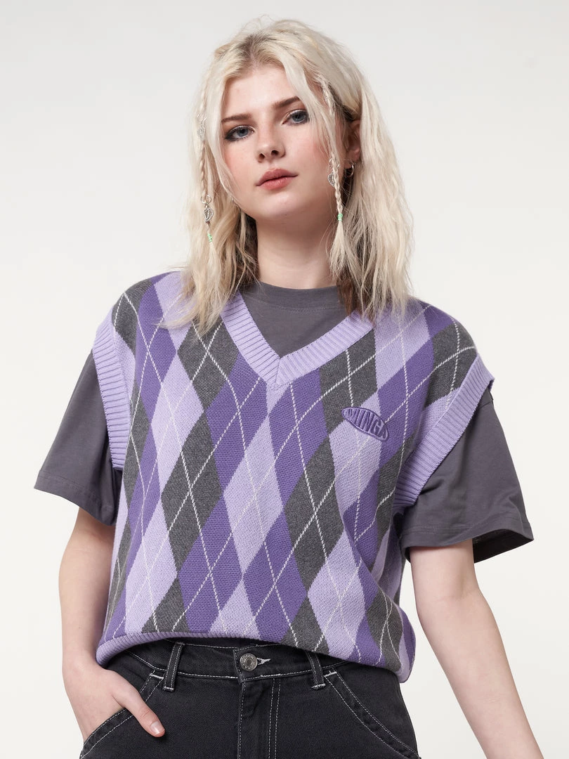 Minga London Cleo Argyle Purple Knit Vest Clothing