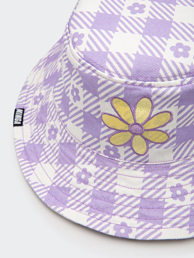 Minga London Clothing Floral Gingham Lilac Bucket Hat
