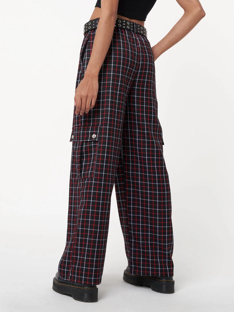 - Plaid check pattern in black, red & purple