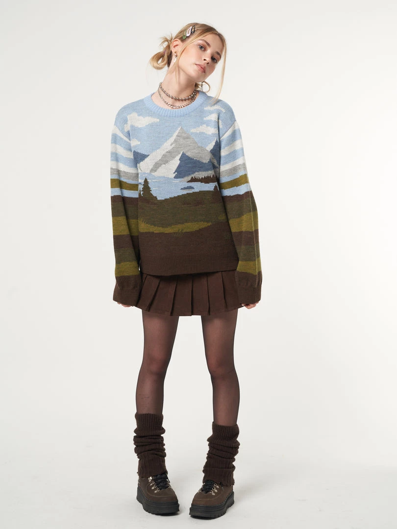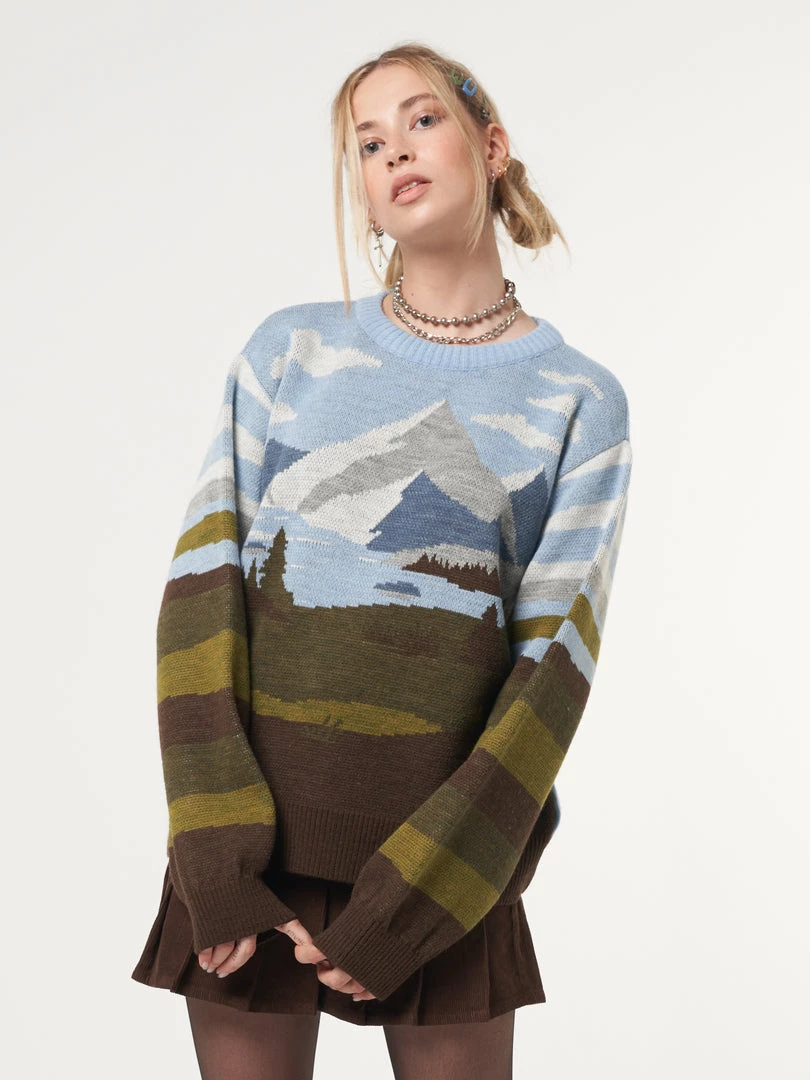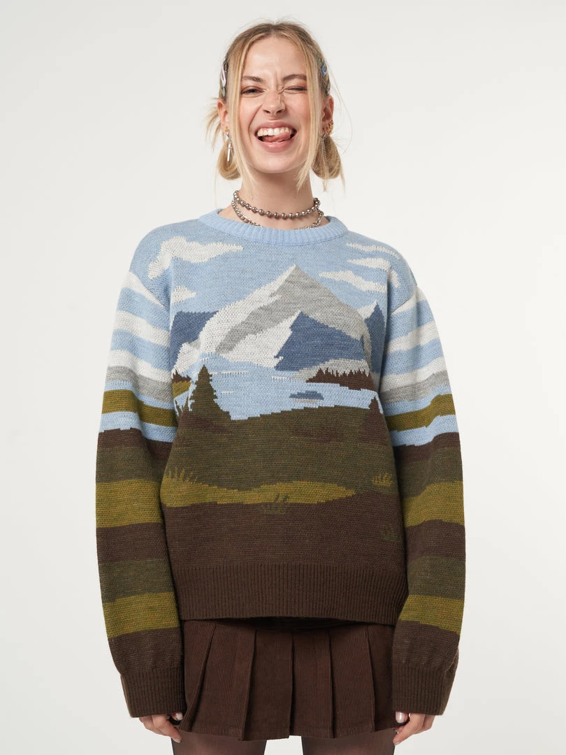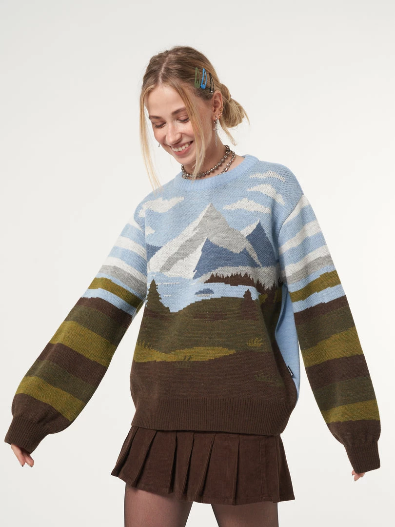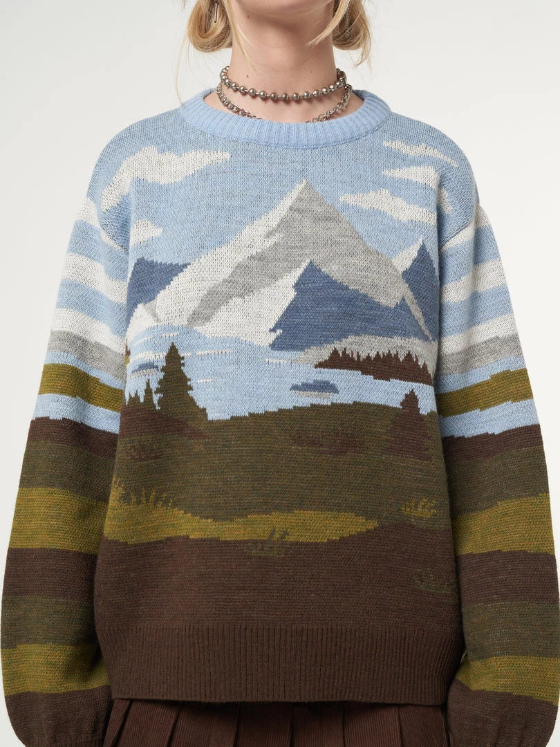 - Mountain landscape in brown, green and blue tones