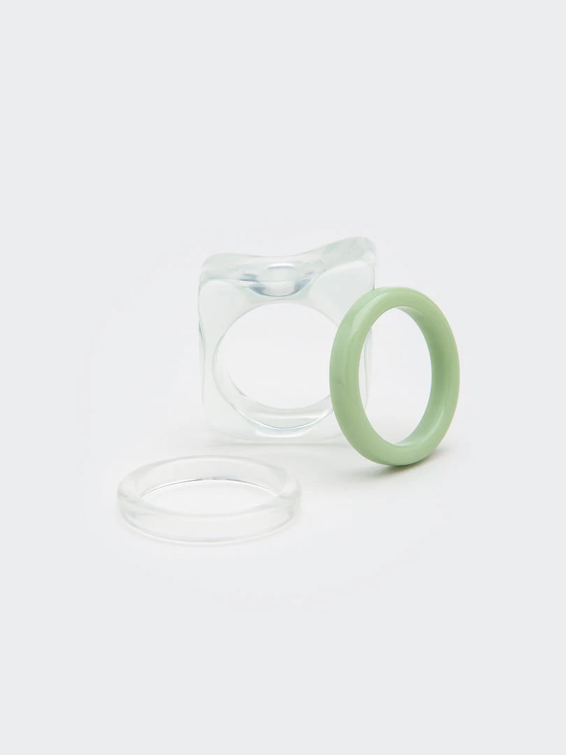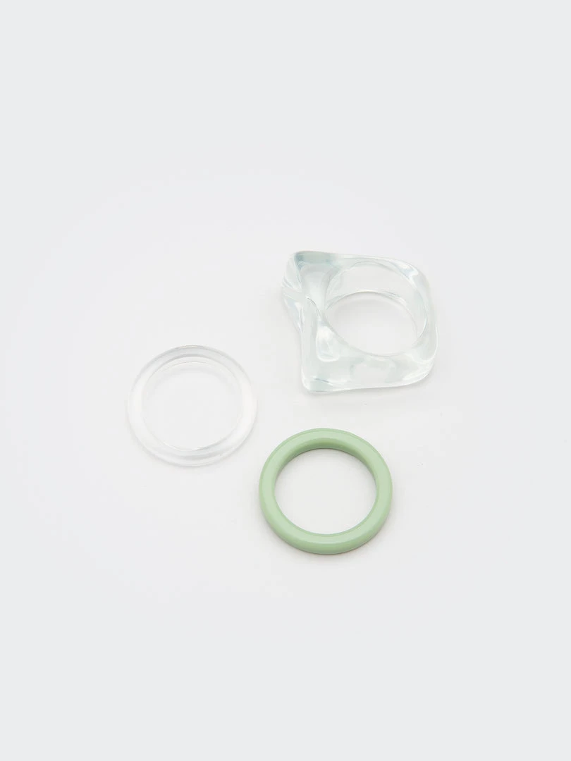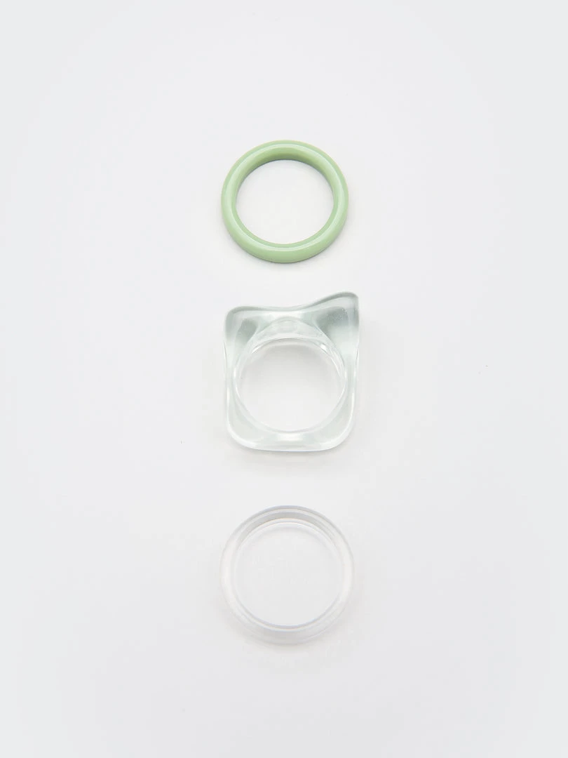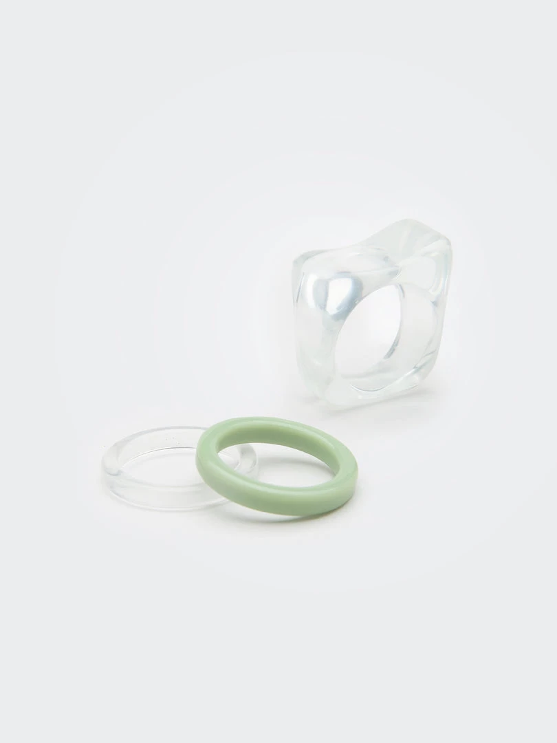 Be the first to review “Minga London Clothing Translucent Green Plastic Rings Set” Cancel reply