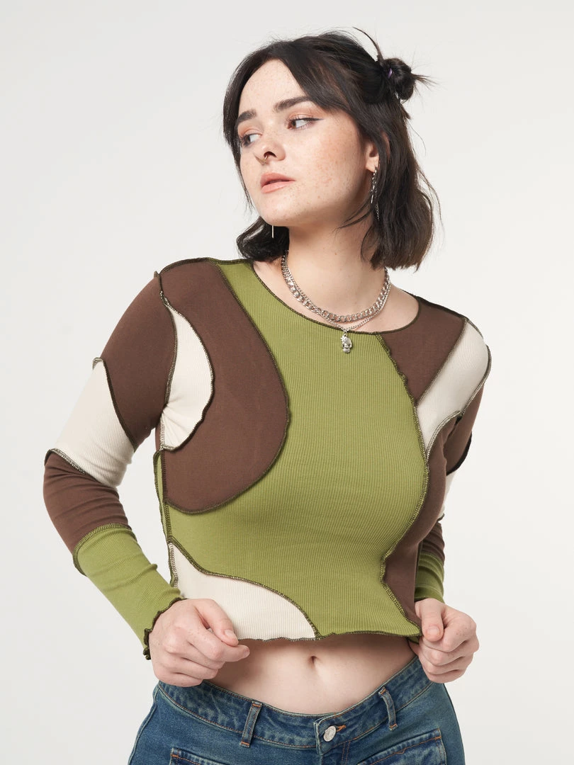 Be the first to review “Minga London Clothing Wave Patchwork Crop Top” Cancel reply