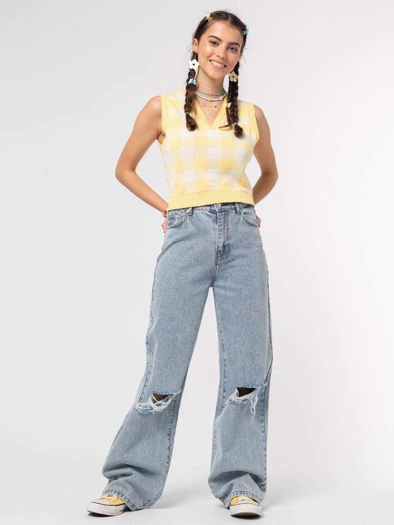 Minga London Clothing Yellow Check Knitted Sweater Vest