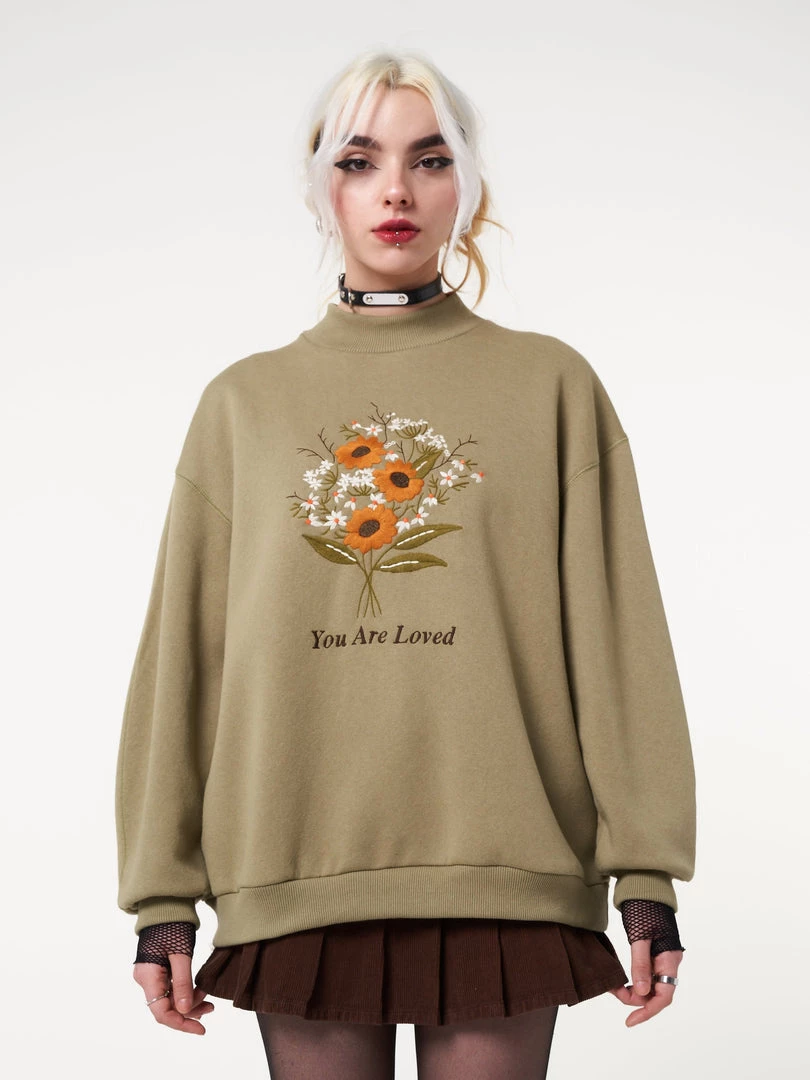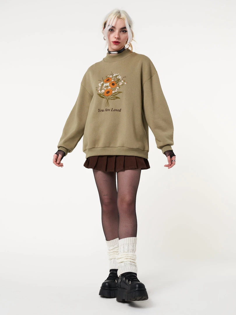 Minga London Clothing You Are Loved Flower Bouquet High Neck Sweater