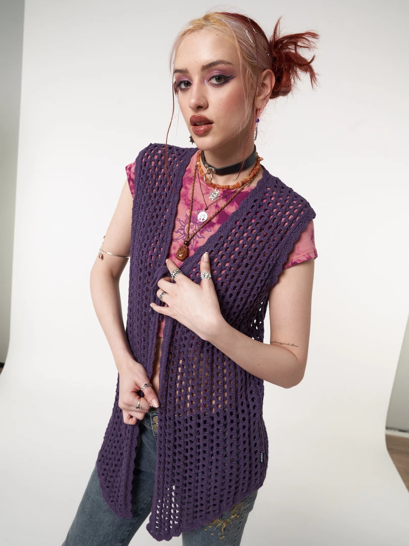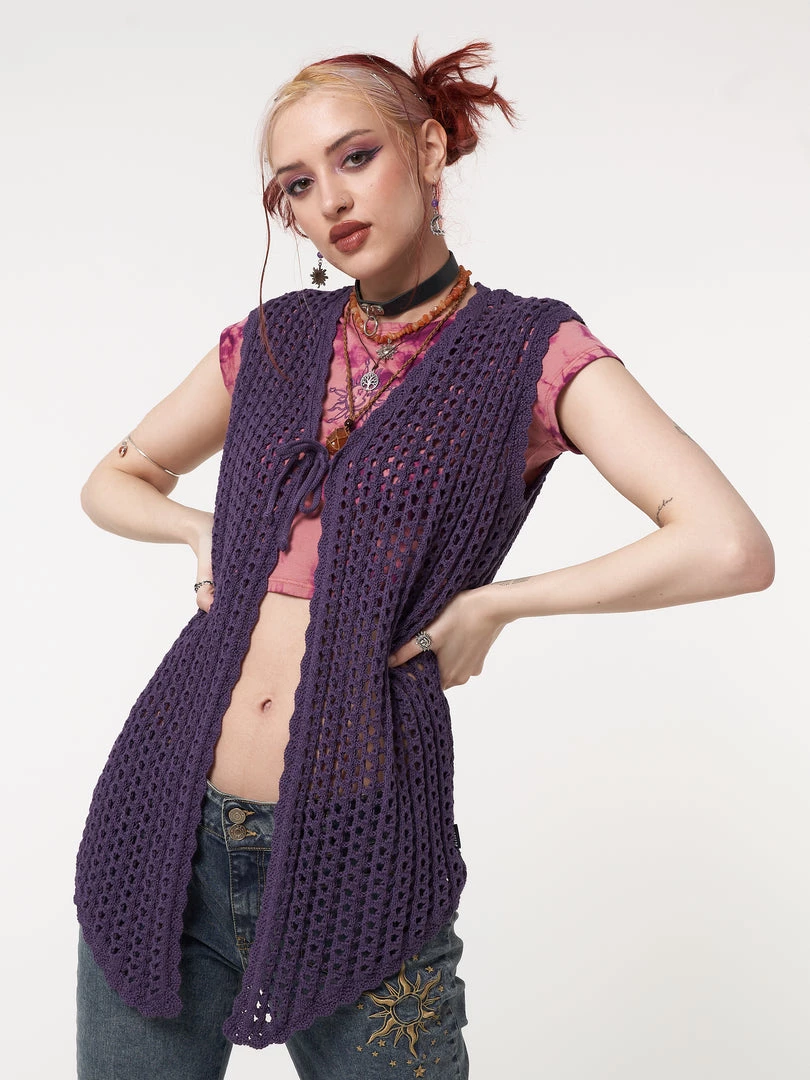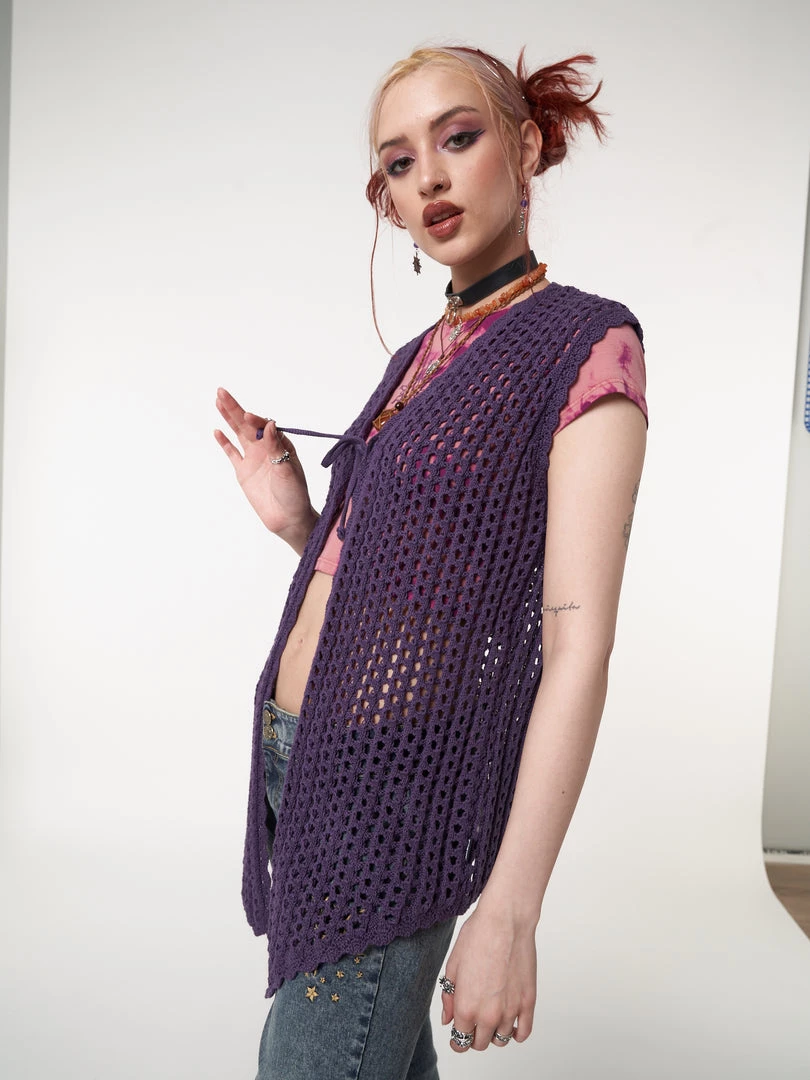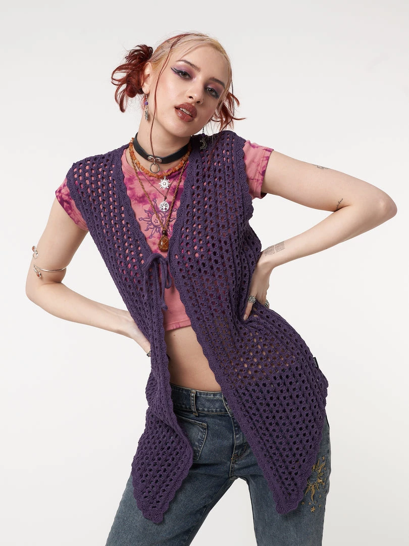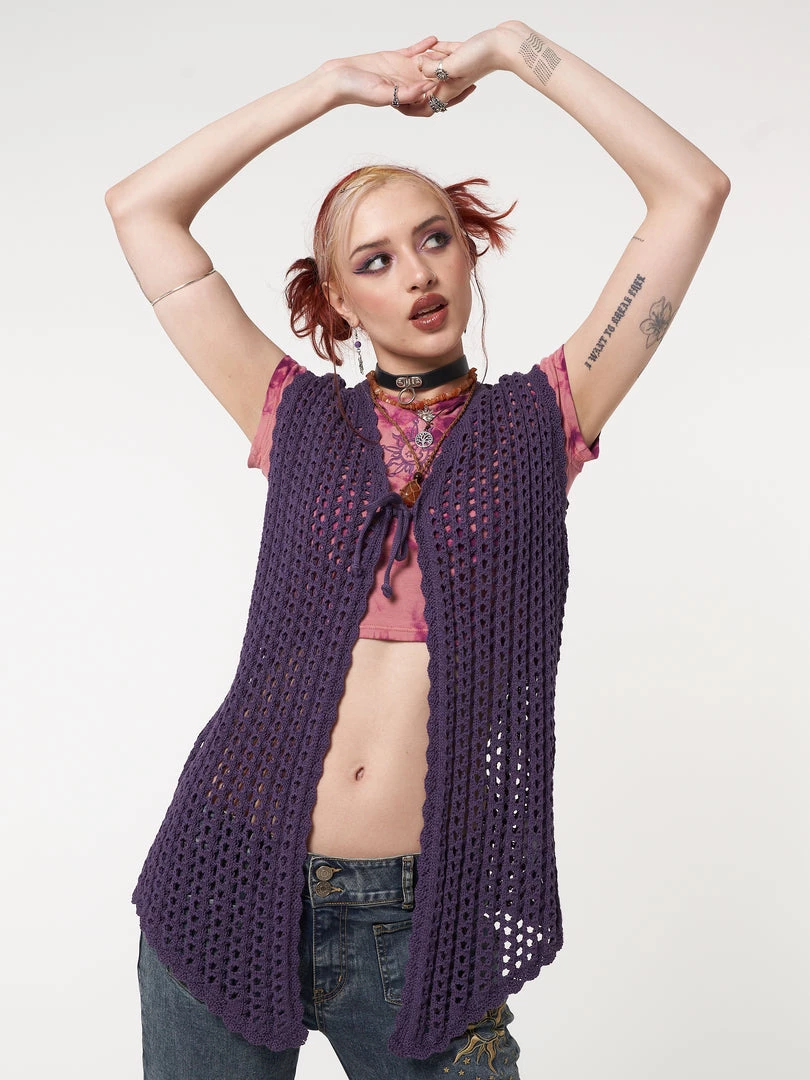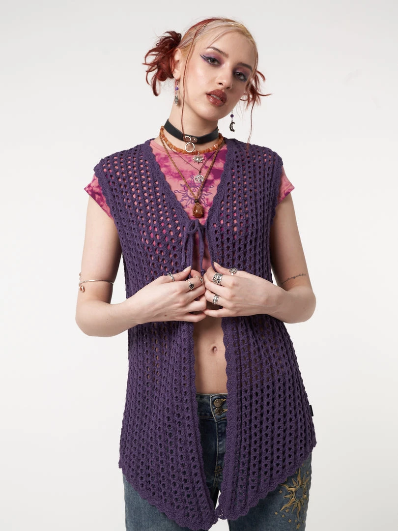 - Tie front vest cardigan in purple