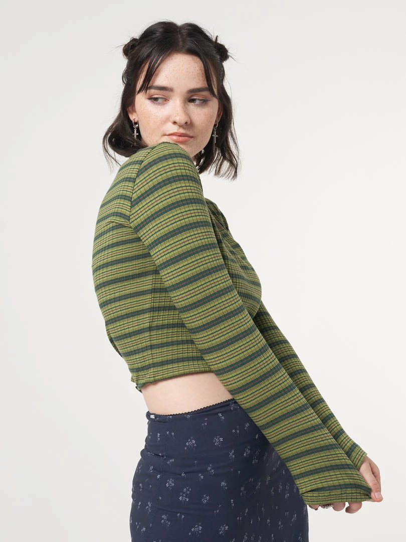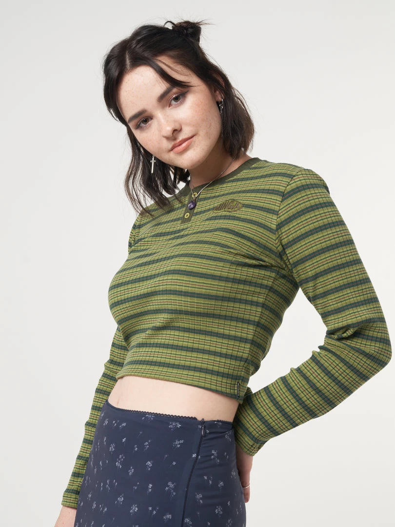 Minga London Emerald Striped Rib Half Button Top Clothing