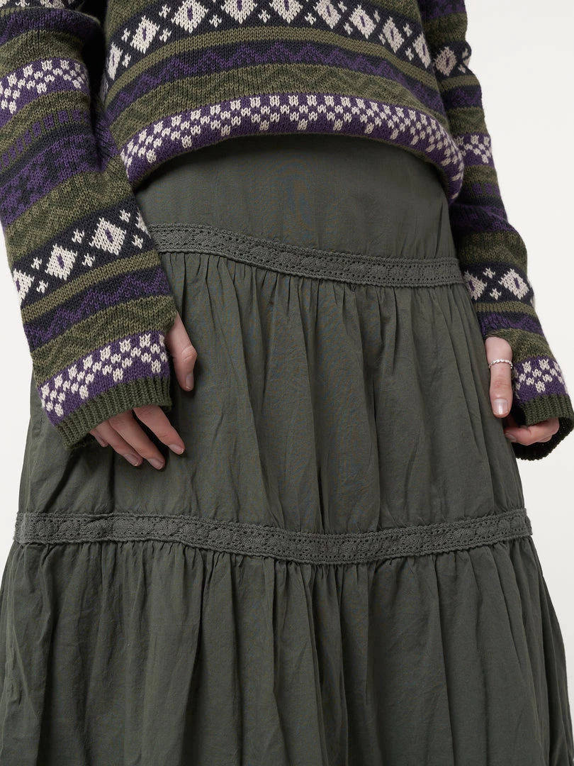 Minga London Foggy Green Ruffle Lace Maxi Skirt