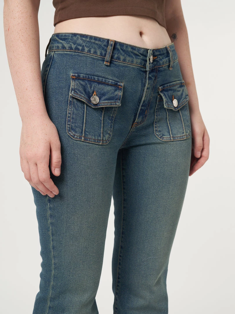 These jeans are a dream! The overdye effect is beautiful, and the fit is perfect. The flare adds a nice retro vibe, and the front pockets are a great detail. Absolutely love them!