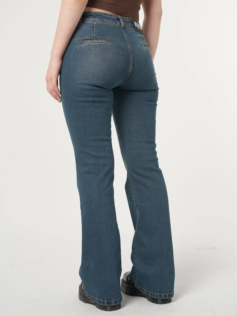 The Minga London jeans are stunning. The jade overdye color is so unique, and the fit is amazing. The flare adds a nice retro feel, and the front pockets are very practical. Highly recommend!