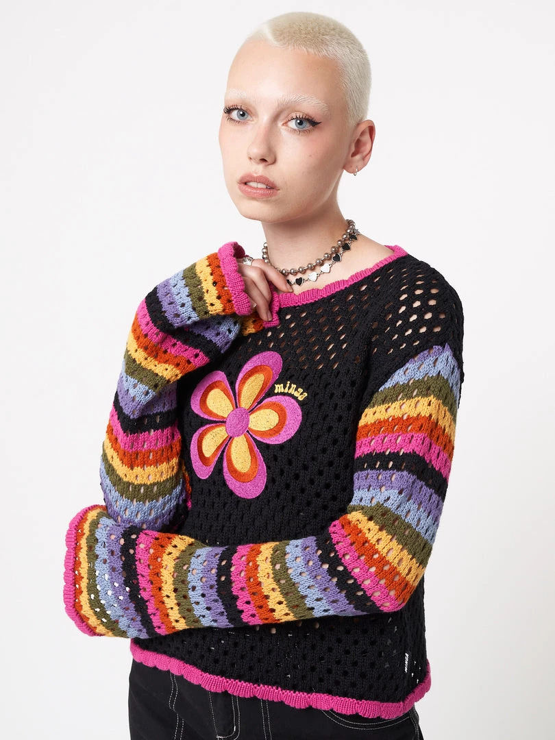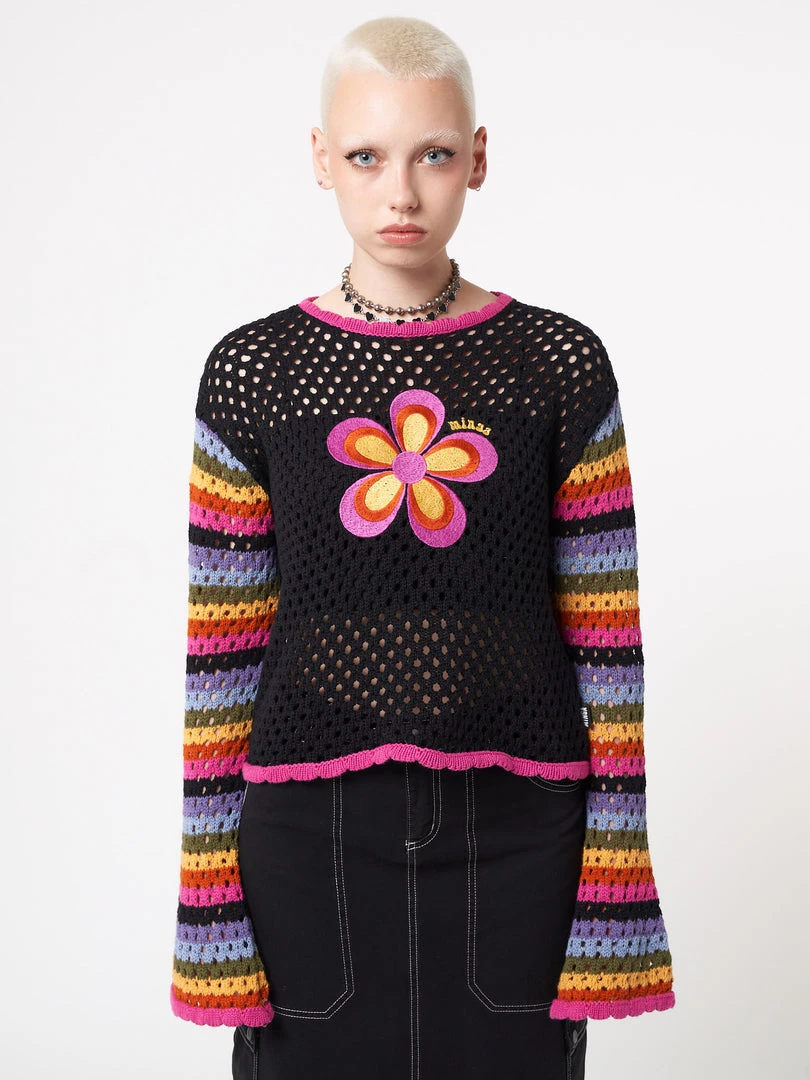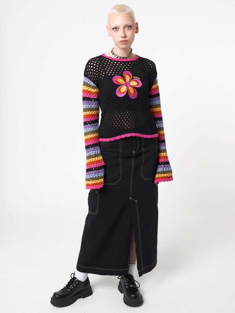 - Cropped knit jumper in black
