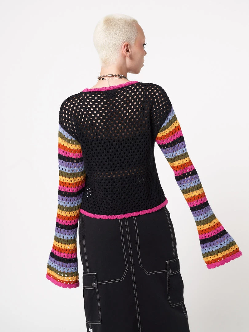 - Flare long sleeves in rainbow stripes