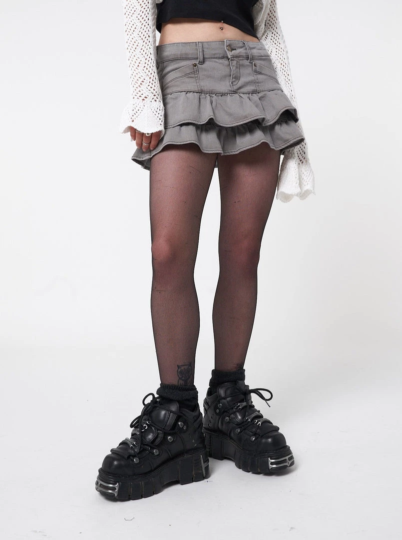 Introducing an icon a.k.a the ruffle mini skirt. Dial up the volume on your ‘fit.Â