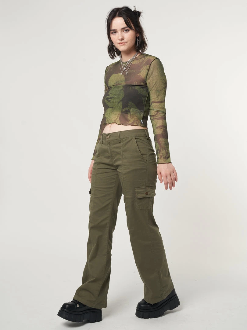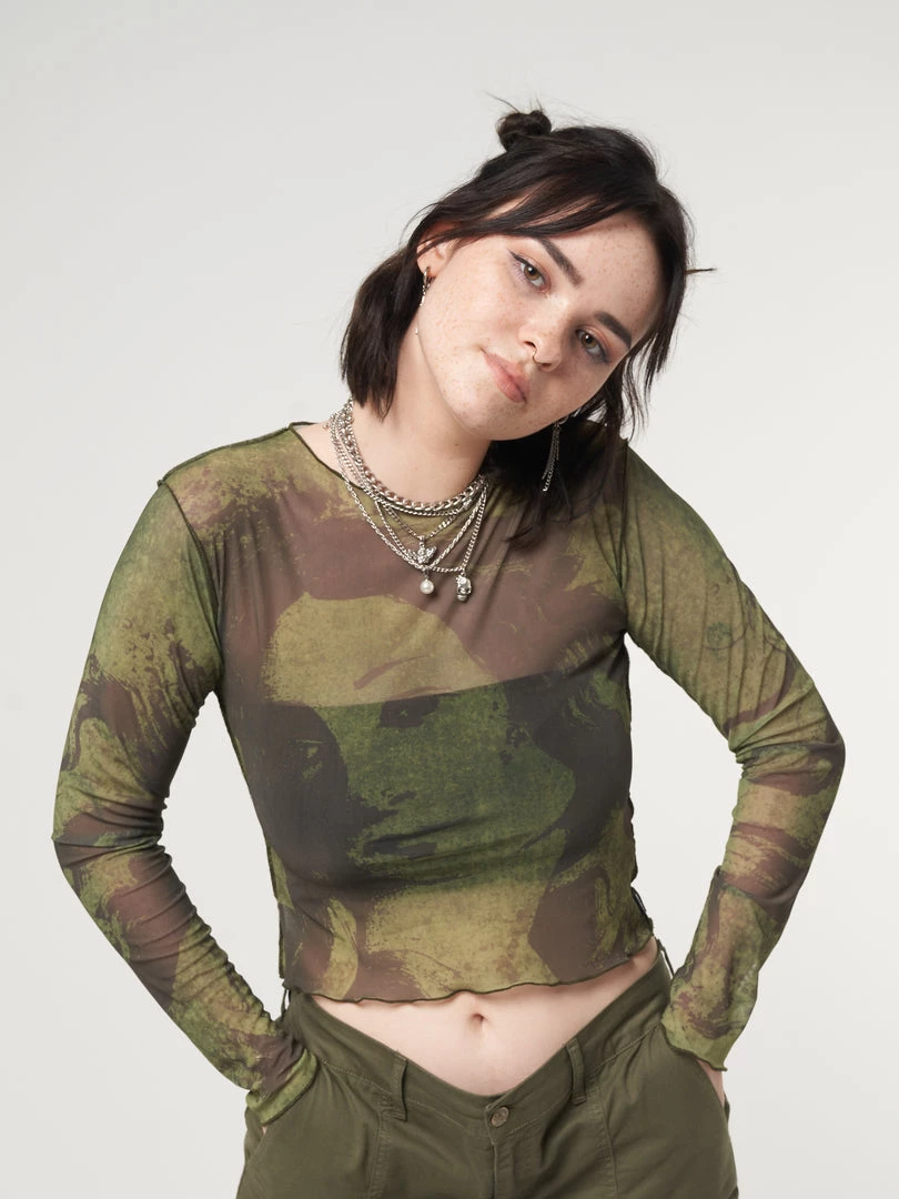 - Mesh crop top in olive green