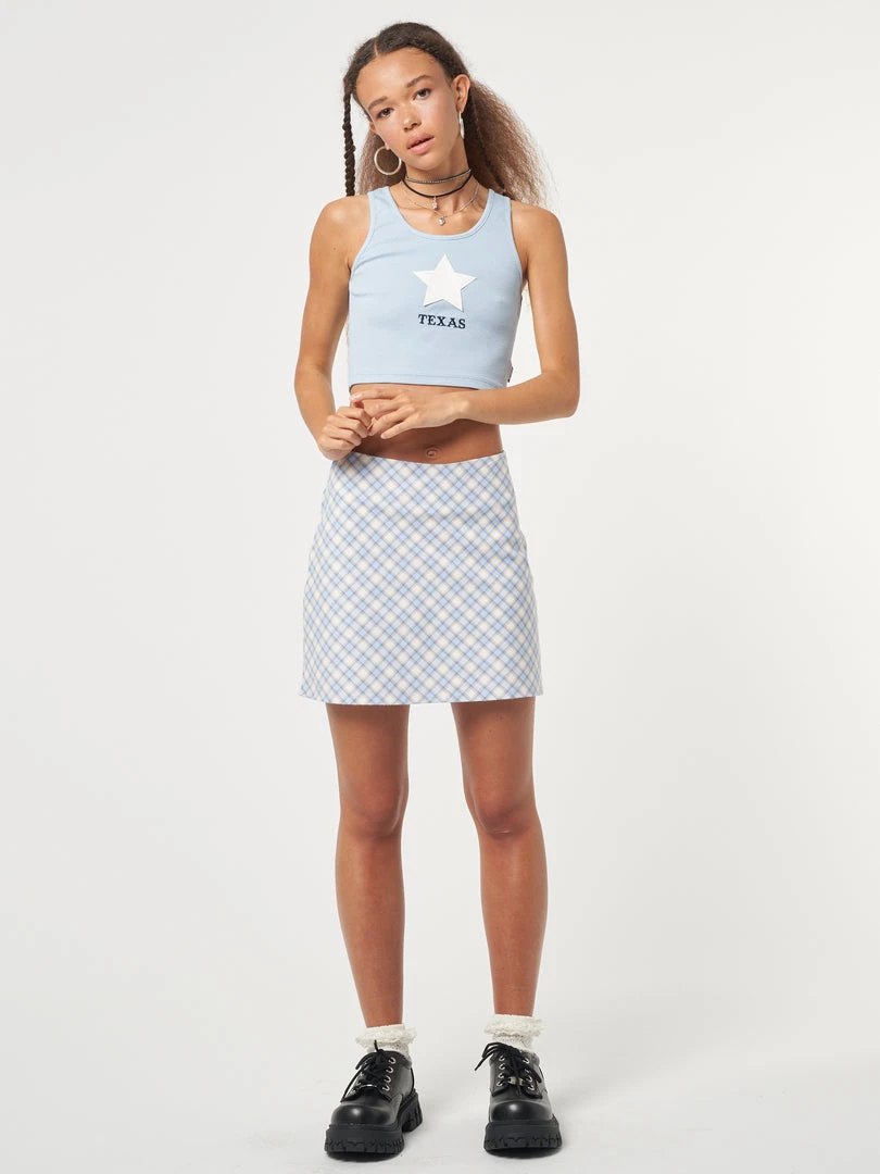 SKU: minga-london-6633103523899 Categories: Bottoms, Clothing, Sale Tags: 70%, Blue, Check, Hottest, Mini, Pattern, Sale, Skirts