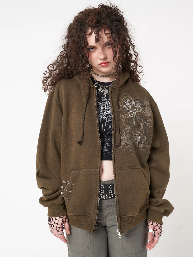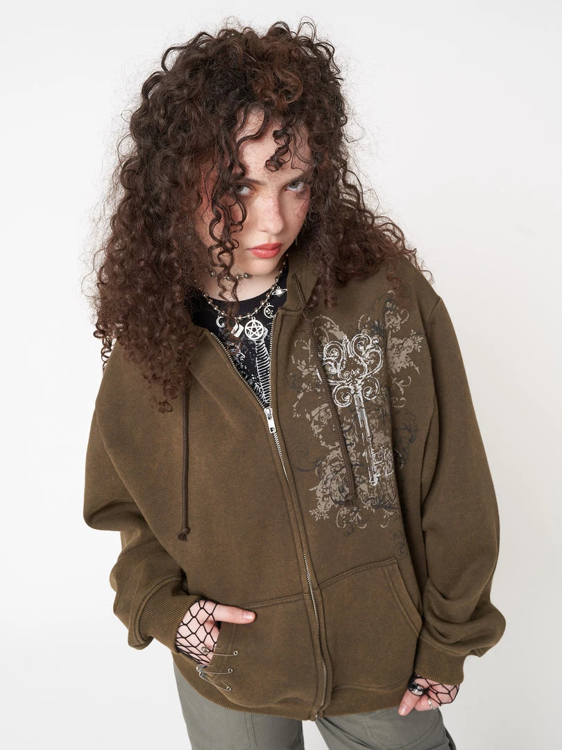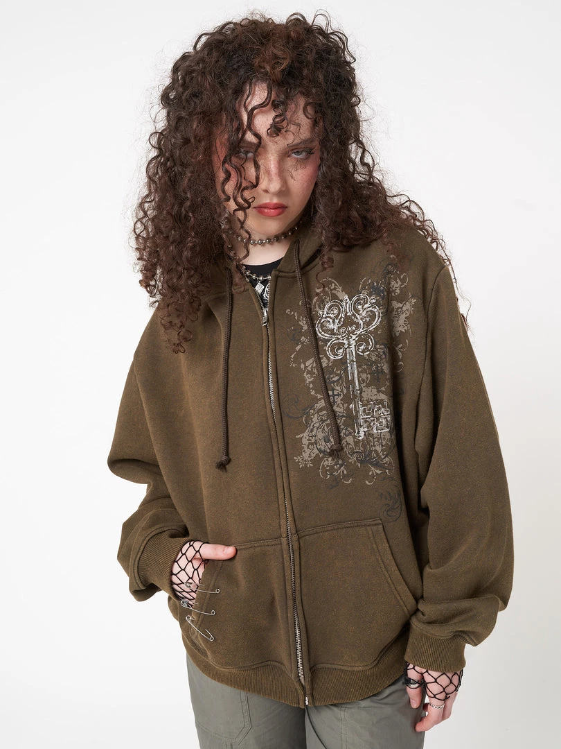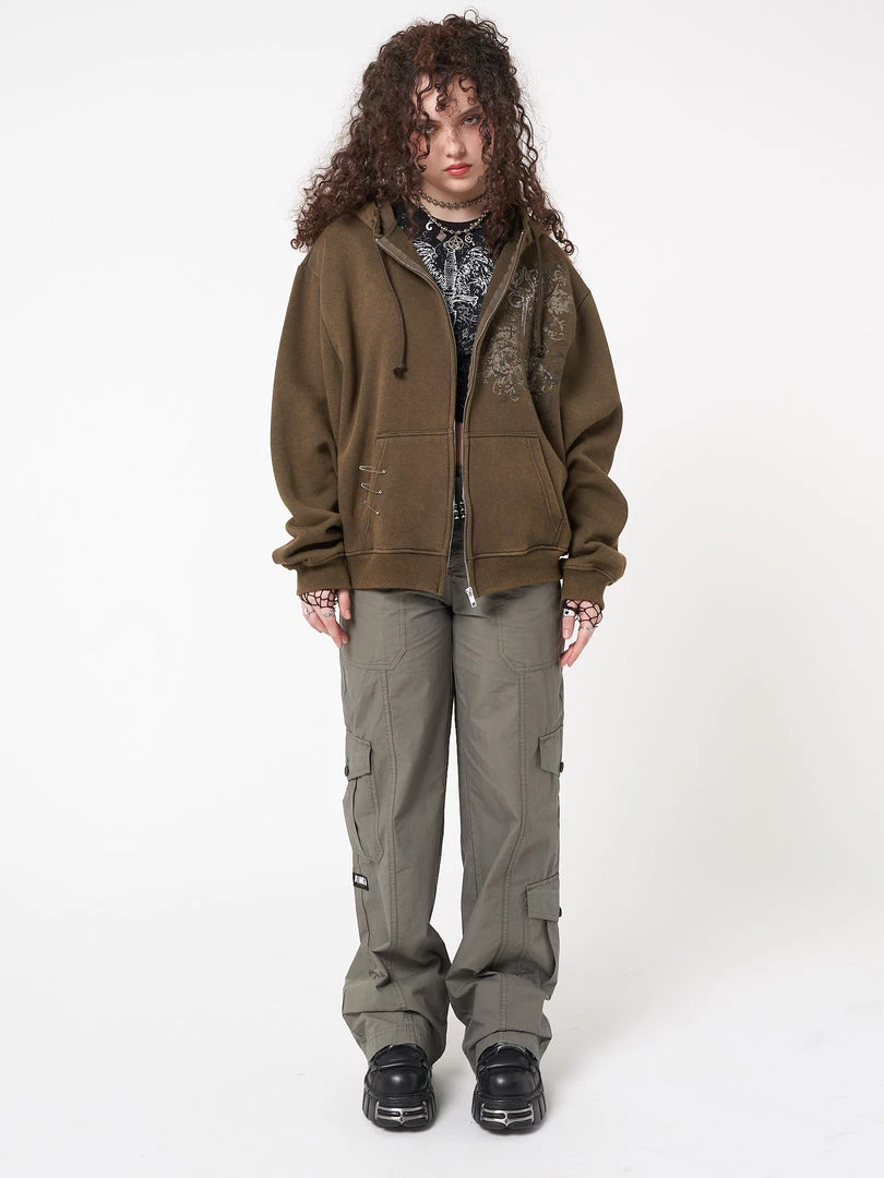 - Zip up hoodie jacket in washed moss green