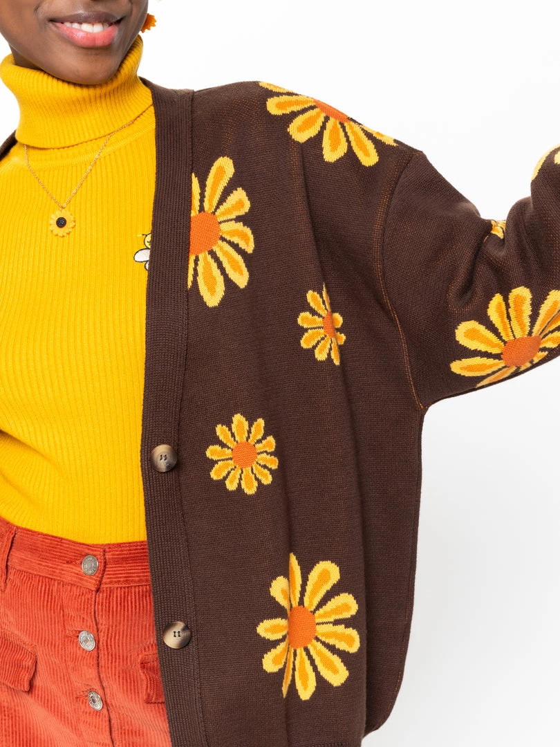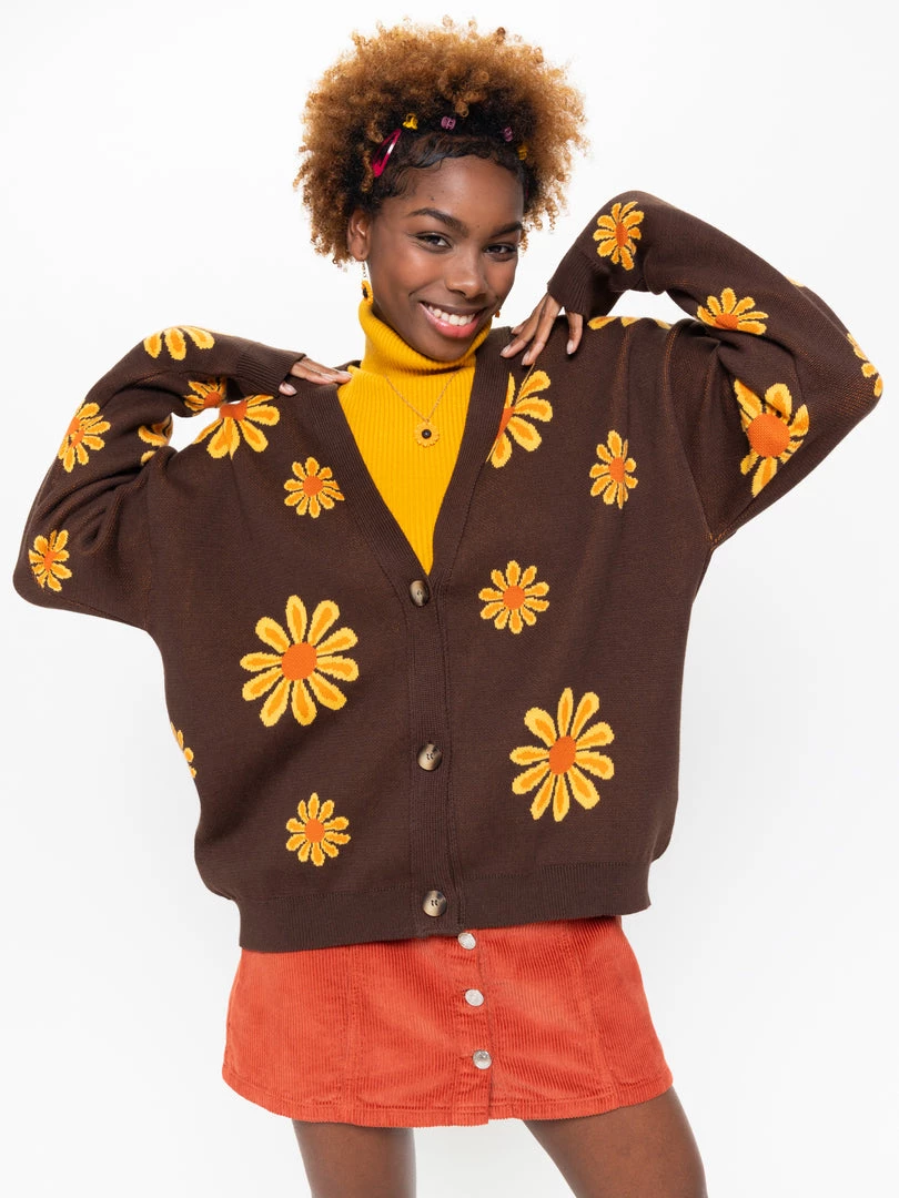 The sunflower cardigan is as cute as it looks online. It’s versatile and goes well with many outfits. Very happy with this buy!