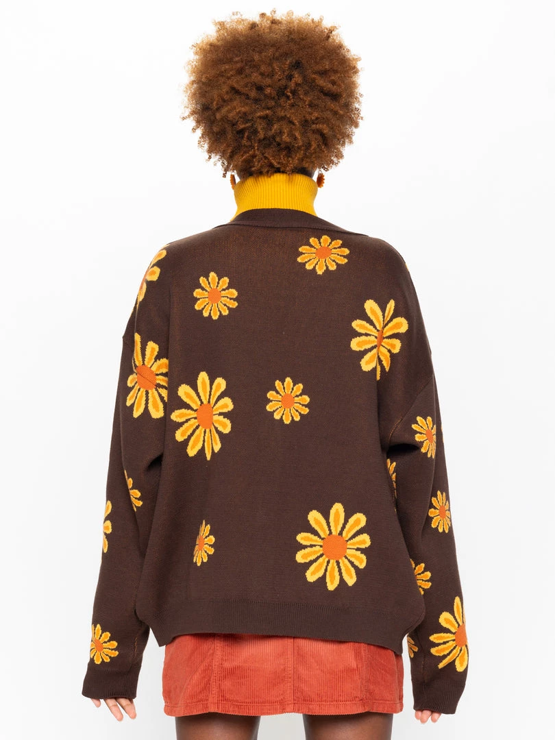 I adore this cardigan! The fit is great, and the sunflower design is unique. It’s become my go-to piece for casual outings.