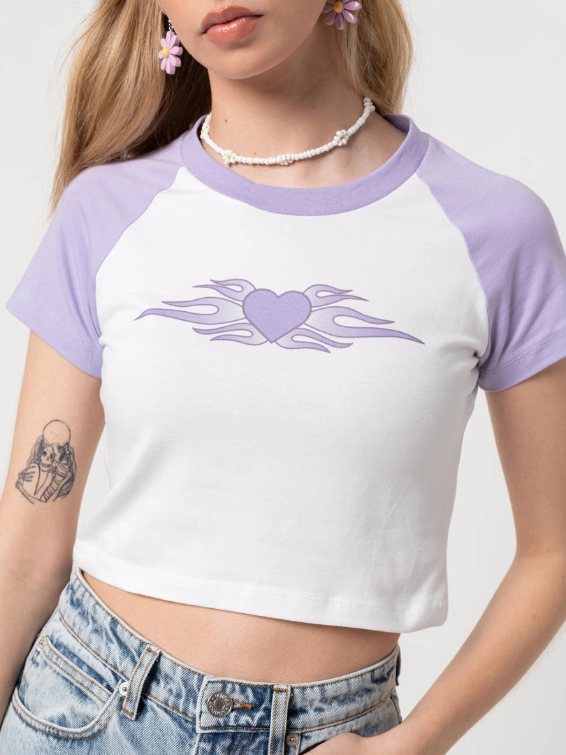 Minga London Tops & Tees Flaming Heart Raglan Crop Tee